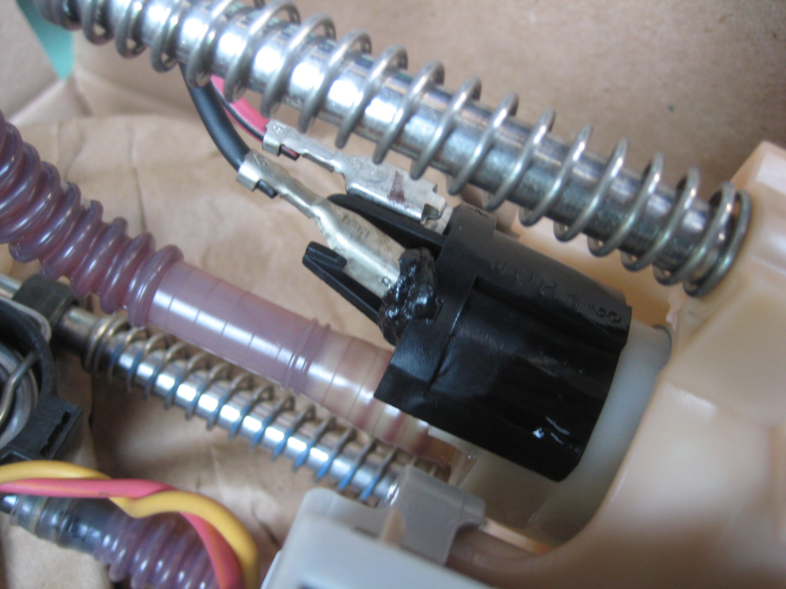 モーター部分の端子の根元が溶けて変形しています。
