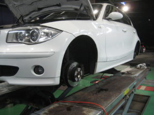 BMW 1シリーズ アルピナ アイドラプーリー交換 タイヤ交換 205/55R16 ブレーキパッド