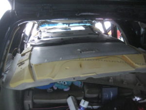 天井ライナーを外さないとサンルーフの貼り替えができないので、