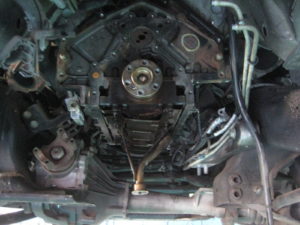 こちらはフロントデフを外さないとオイルパンが外れないので