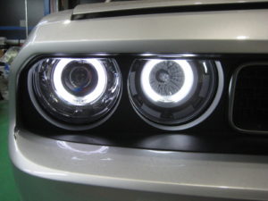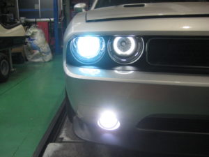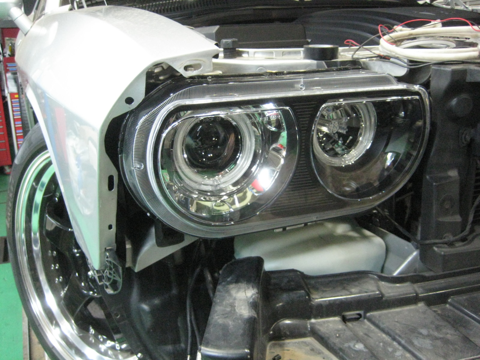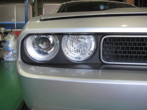 ダッジ チャレンジャー 社外ヘッドライト HIDコンバージョンキット ライト交換 バンパー外し 持込部品取付 持込取付 埼玉県 アメ車