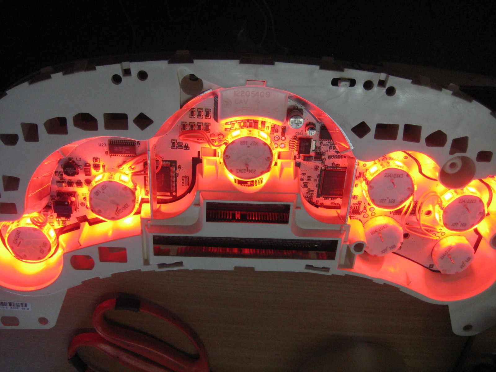 ハマーH2 メーター照明LED化 ステッピングモーター交換 持込加工 LEDテープ 赤青白黄 RGB 明るさのムラ アメ車修理