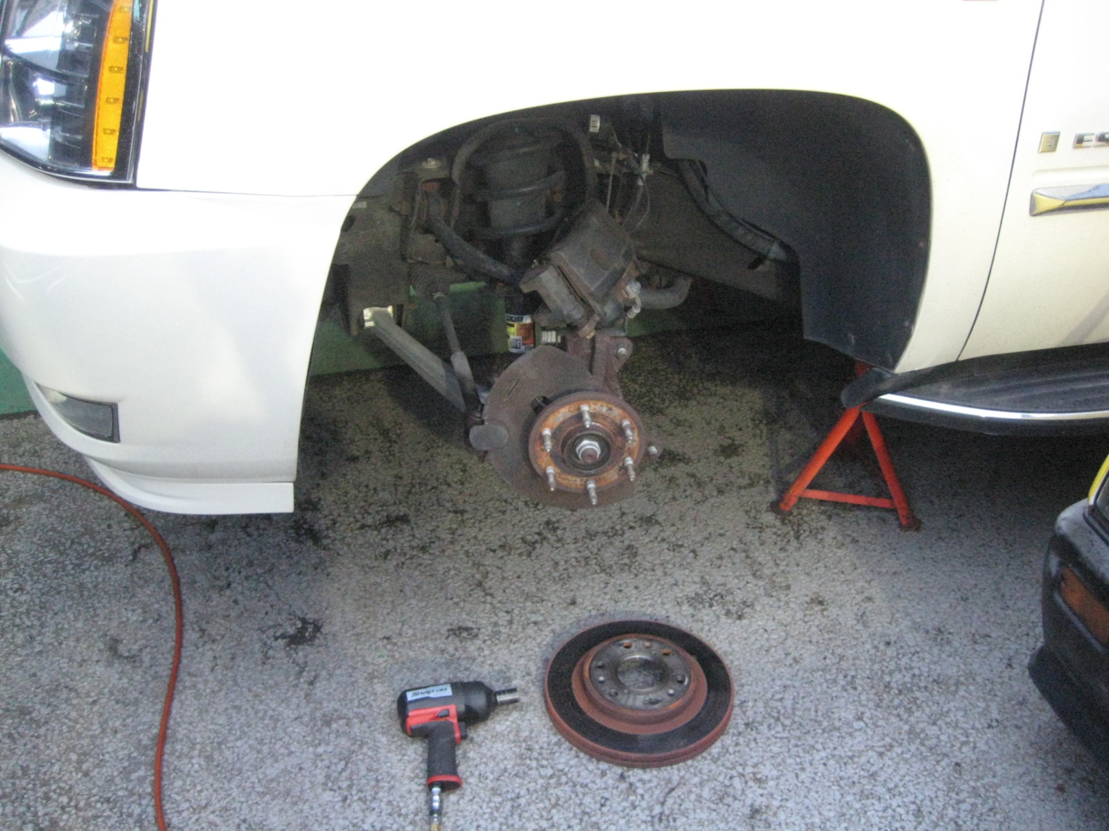 キャデラック エスカレード フロントブレーキキャリパー クリープ現象 進まない 煙 ジャダー 振動 ディスク研磨 ローター研磨 アメ車 整備 修理