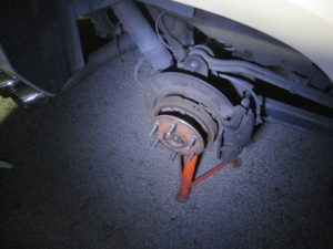 ブレーキが掛かった状態で走行してしまった為パッドが無くなって