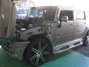 ハマー H2 ウォッシャー液 出っ放し モーター音 異音 車検整備 ワイパーモジュール アッパーアーム ブーツ割れ 4輪アライメント 大口径