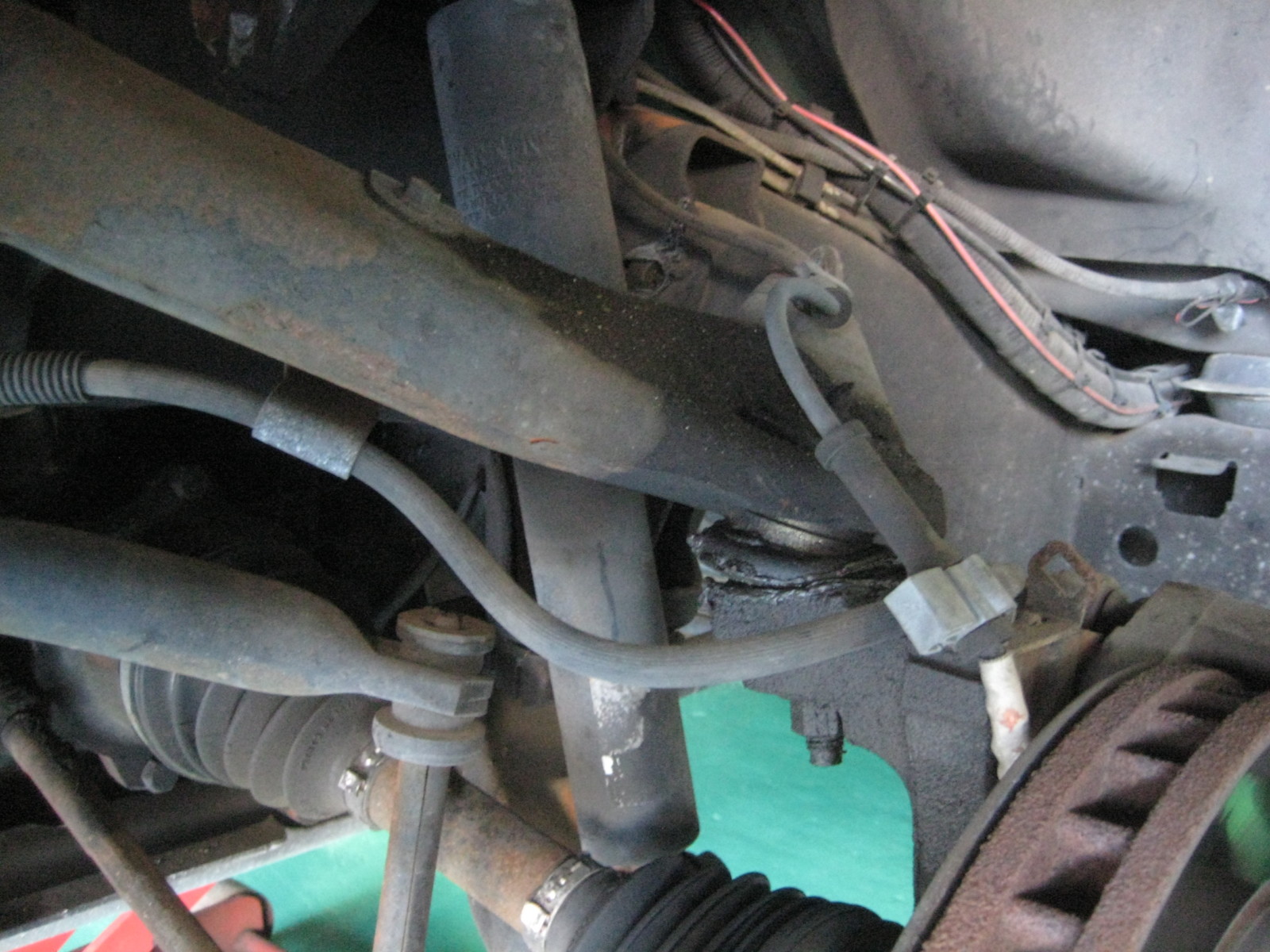 フロント足廻り、右側アッパーアームのボールジョイントブーツ割れ