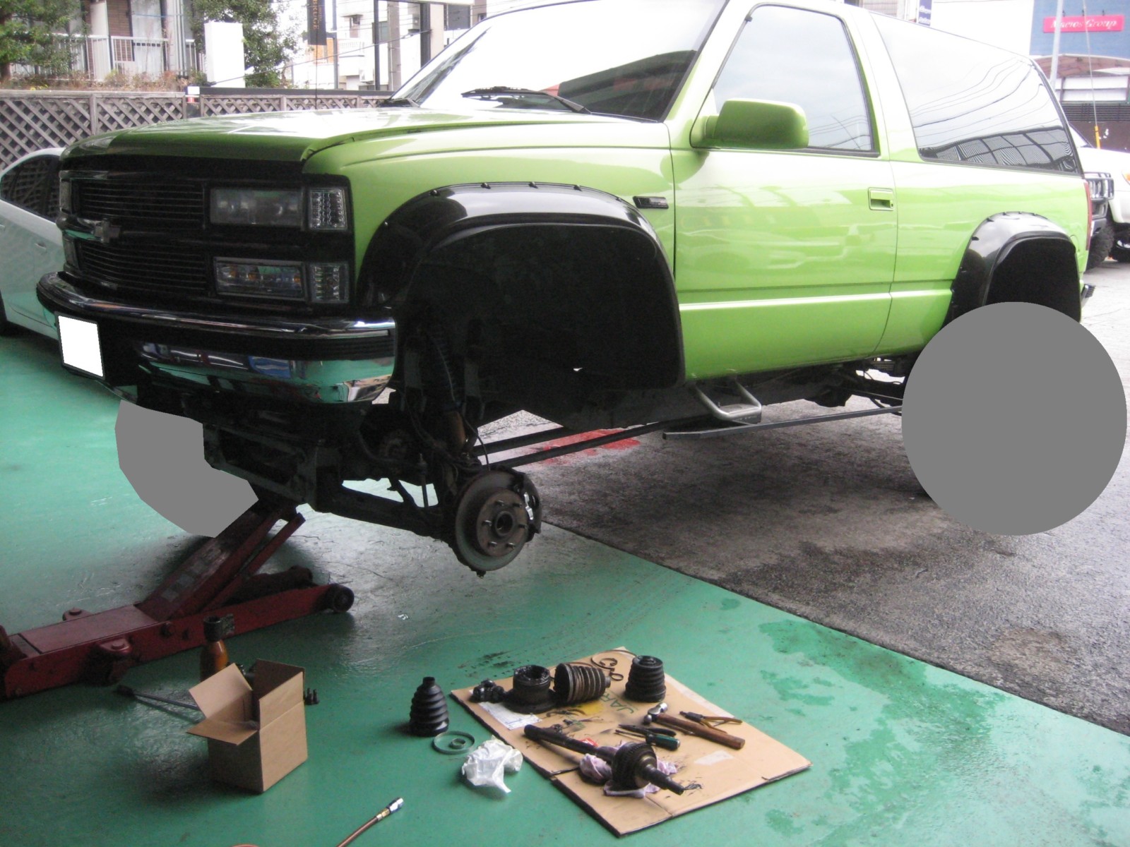 シボレー GM ブレイザー ドライブシャフト ブーツ交換 リヤブレーキ ホイルシリンダ ブレーキシュー オイル漏れ修理 オーバーホール