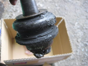 左右のフロントロアアームボールジョイトブーツが裂けて