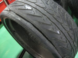 (↓↓↓写真、左下のタイヤが新品のタイヤで極薄です。)