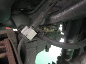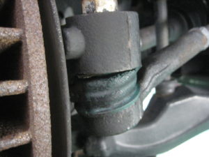 すると足廻りの部品(アッパーアーム・ボールジョイントのブーツ)が破れていました。