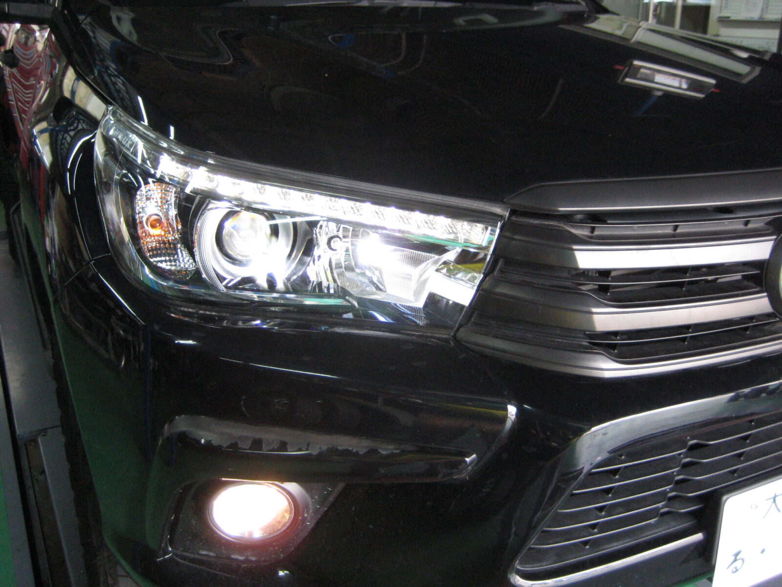 ハイラックス GUN125 ハロゲンヘッドライトからLEDヘッドライトに移植加工です。