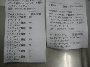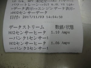O2センサーの不具合(写真のバンク1 センサー1の値が少ない)が見つかりました。。。