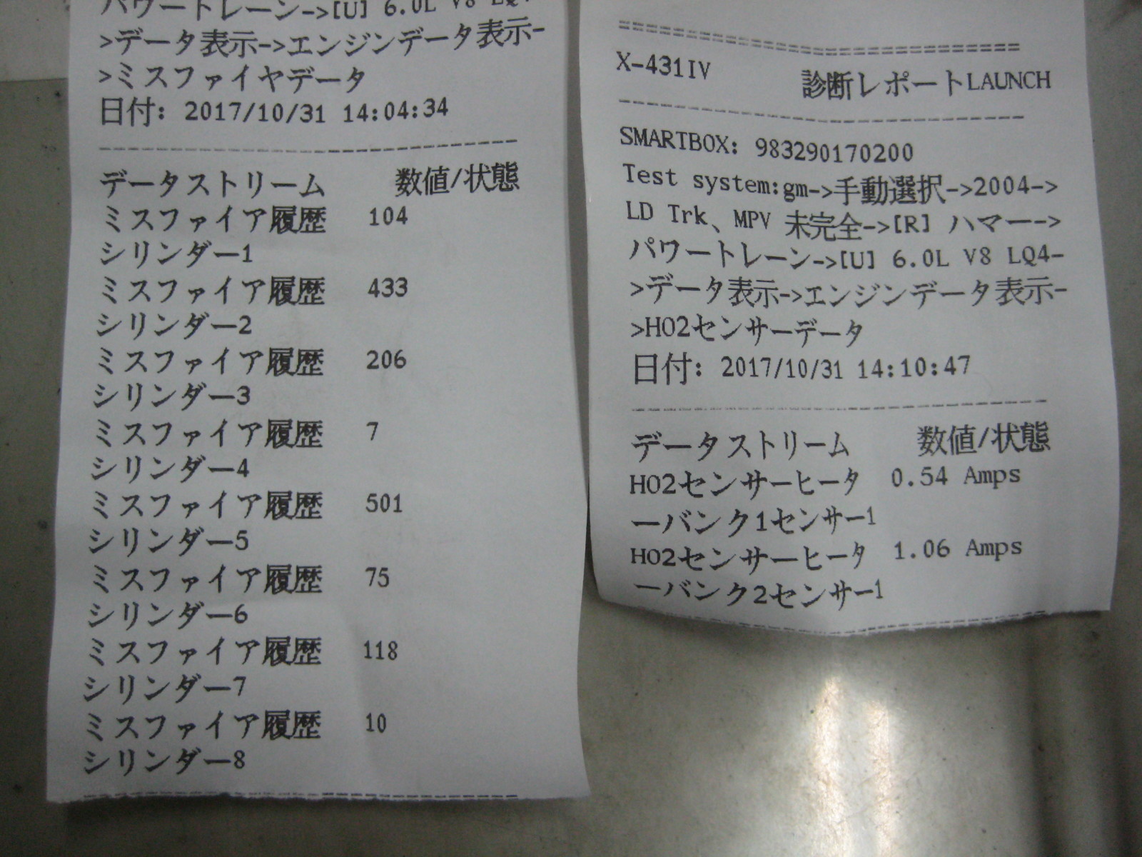 ハマーH2 エンジンチェックランプ点灯 故障診断 コンピューター診断 アメ車修理 O2センサー交換