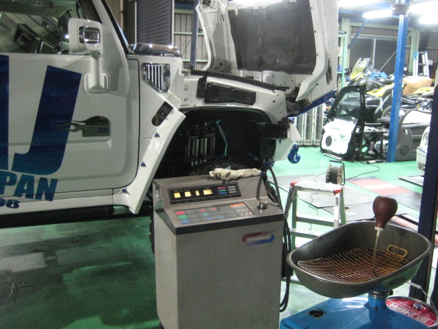 ハマー H2 オイル漏れ修理 オイルクーラーホース修理 オイル滲み修理 A/Tクーラーホース E/gクーラーホース交換