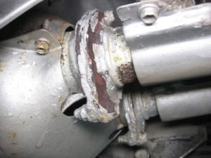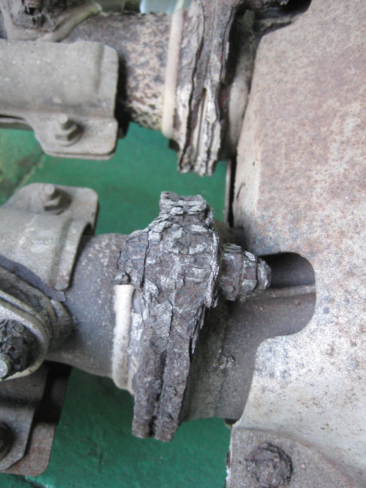 エキパイと触媒の繋ぎ目、フランジ部からの排気ガス漏れがありました。