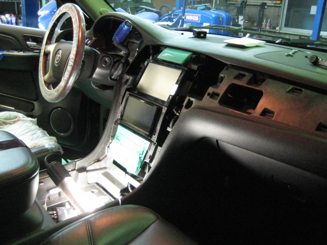 07’エスカレードのツインモニターの最終組付けと納車準備でした。。。