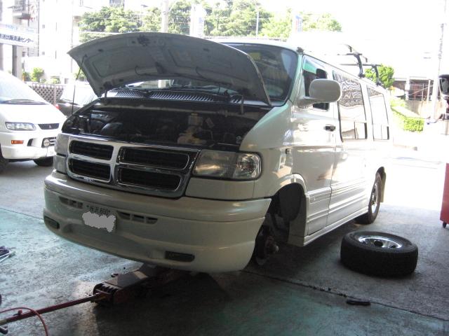 00’ダッジラムバン ベルト交換。ブレーキパッド交換。水温センサー交換。。。