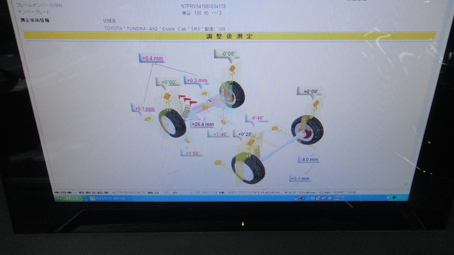 08’タンドラ Wキャブの4輪アライメント調整依頼頂きました。。。