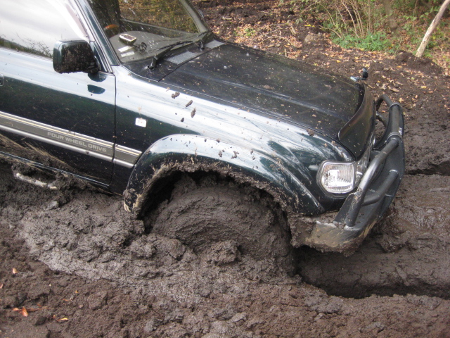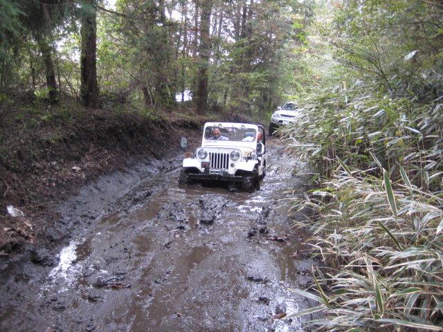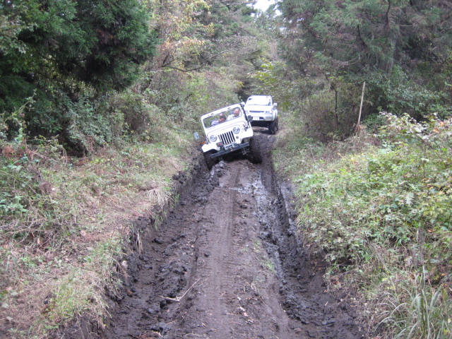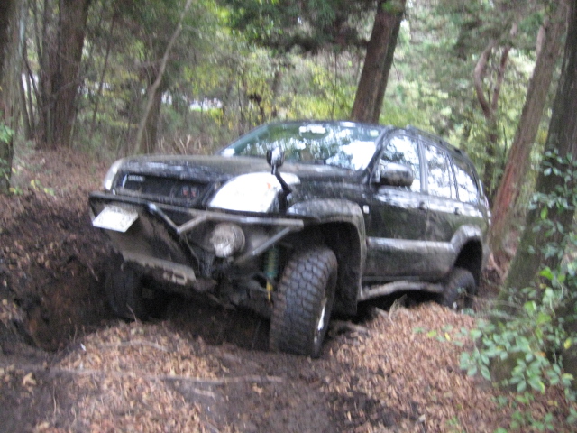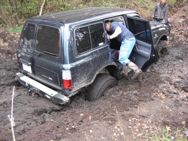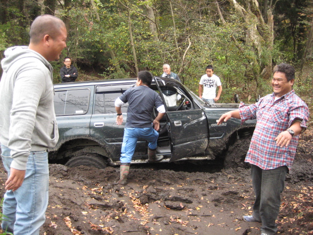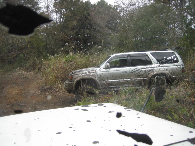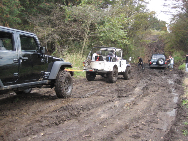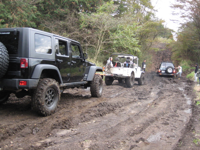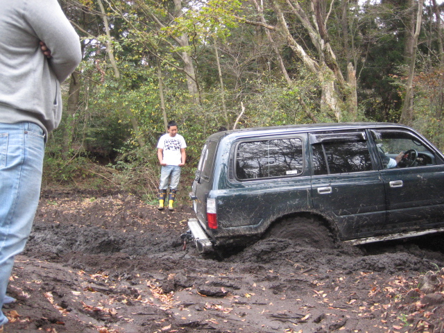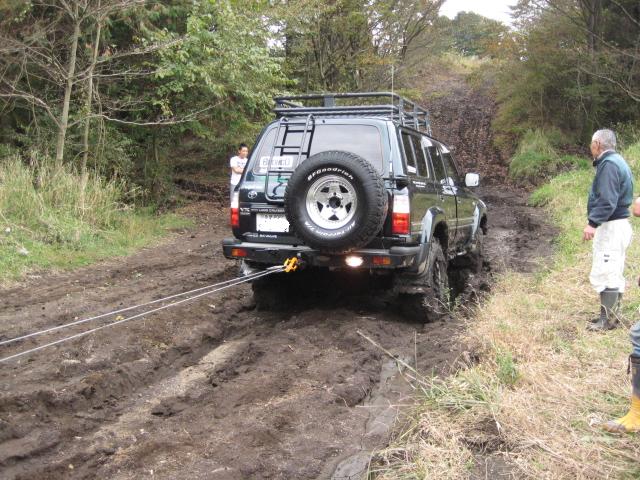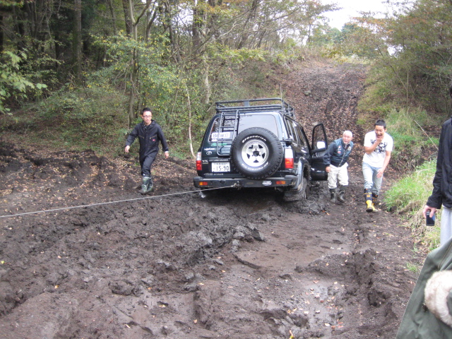 前の木にウインチを巻きつけ、脱出中。。。