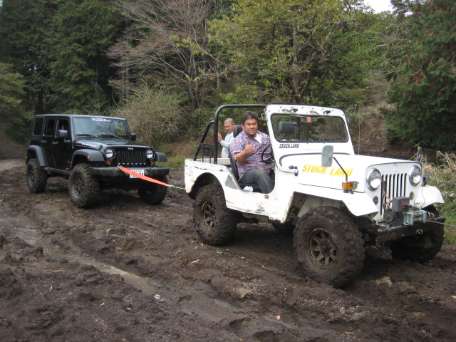 ジープのウインチで引っ張れ。。。
