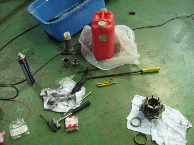 東京都 ランクル80 リヤデフオーバーホール・リヤアクスルシャフトベアリング交換・リヤドラムライニングシュー交換。。。
