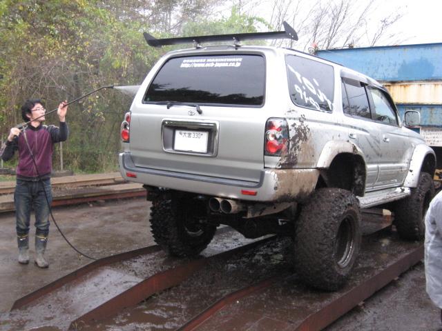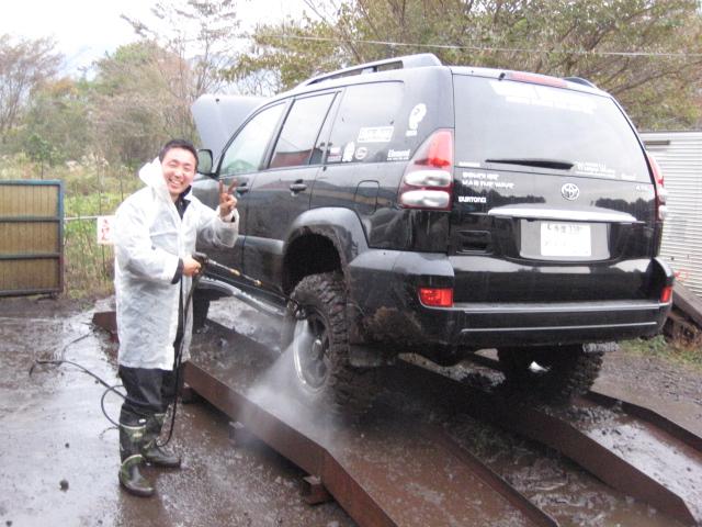 最後は、帰りの道を汚さないようしっかり洗車中。。。