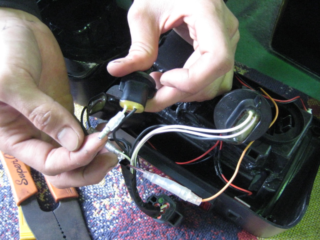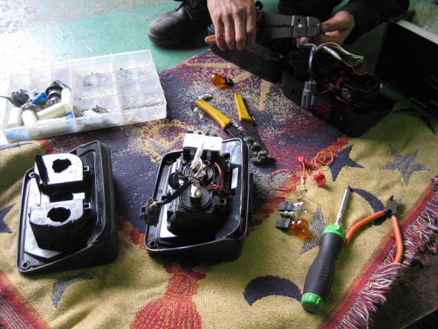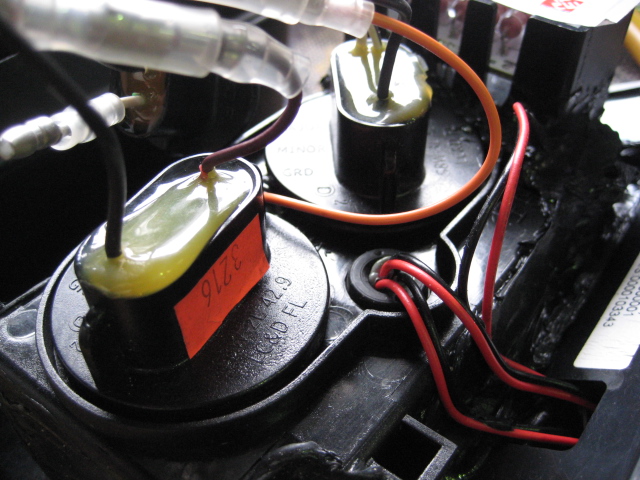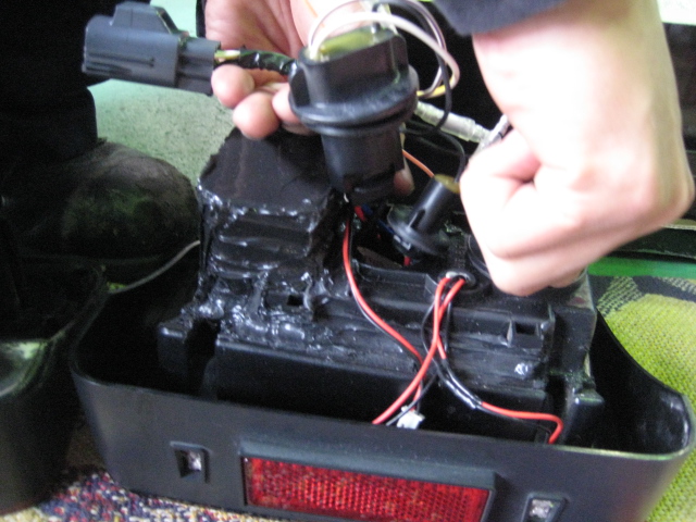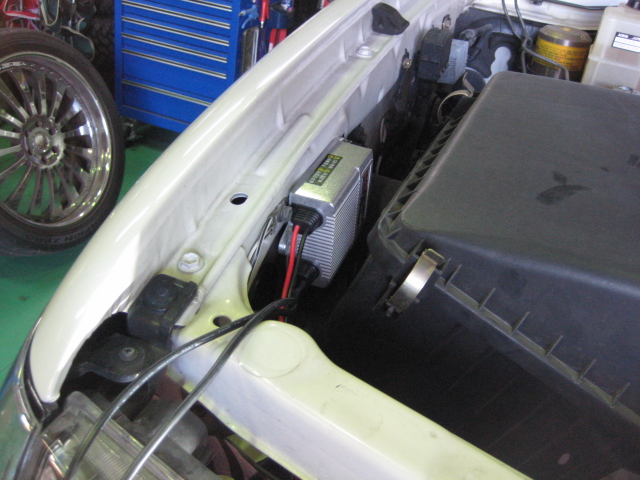 左ヘッドライト用バラストは、バッテリー脇の下で取付。。。