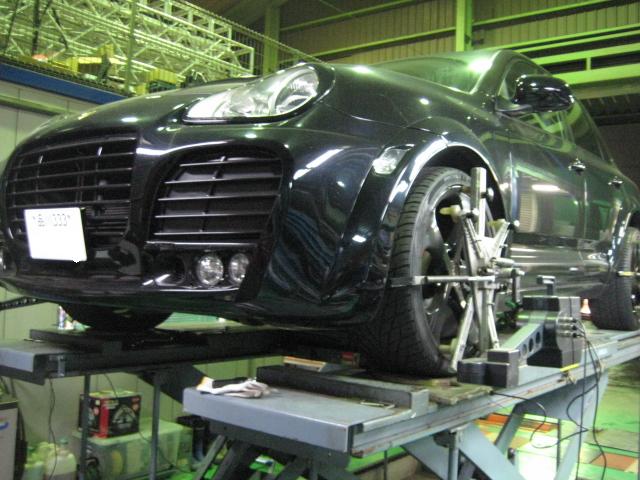 埼玉県 ポルシェ カイエン ローダウン 20インチ 4輪アライメント調整。。。