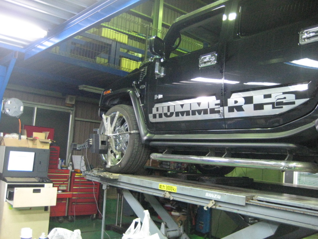 栃木県 青森県 ご来店 ハマーH2 25インチ 4輪アライメント調整。。。