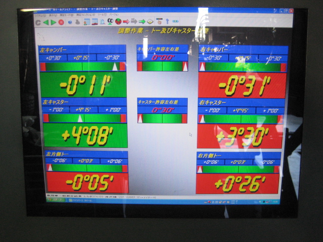 前後タイヤローテーションしてから4輪アライメント調整。。。