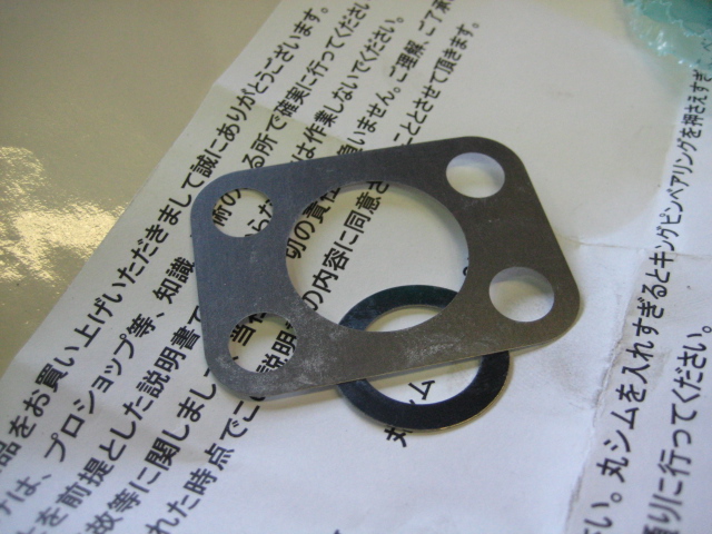 キングピンベアリングのプレロードを調整するためシムを取り付けます。。。