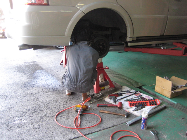 埼玉県 06’ナビゲーター エアサス エア漏れ修理 バネサス交換。。。