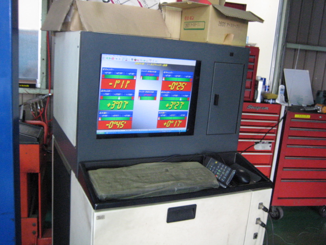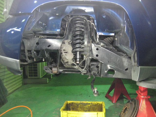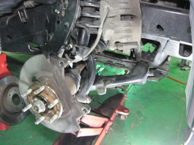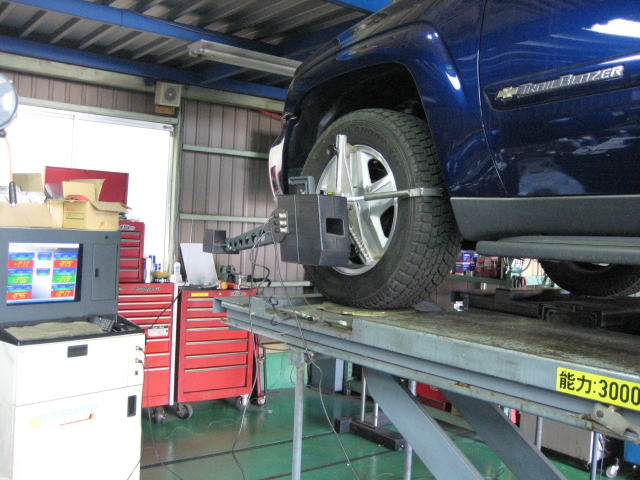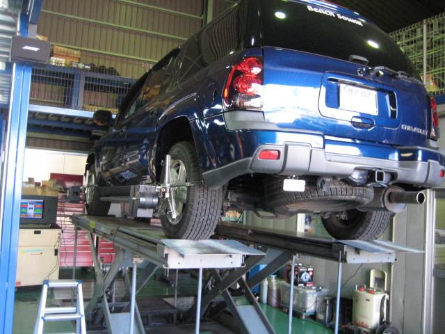 埼玉県 04’シボレートレイルブレイザー フロント足回り交換・ナックル・ドライブシャフトassy交換・4輪アライメント調整