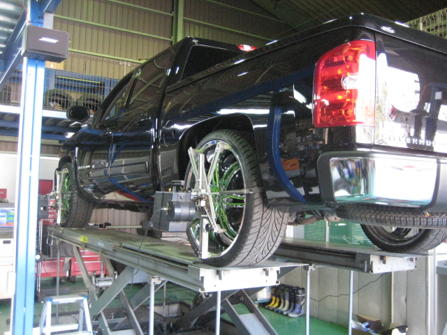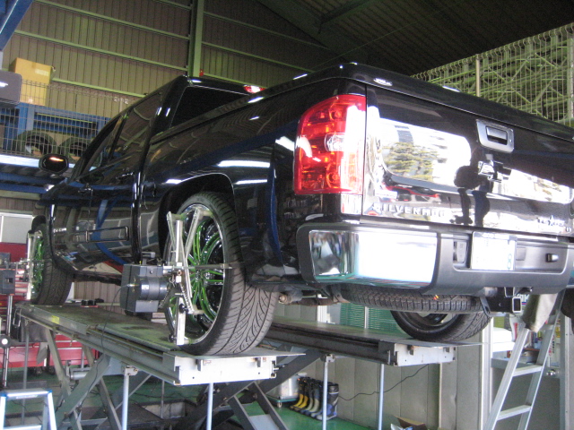埼玉県 07’シボレー シルバラード 26インチ 4輪アライメント調整。。。