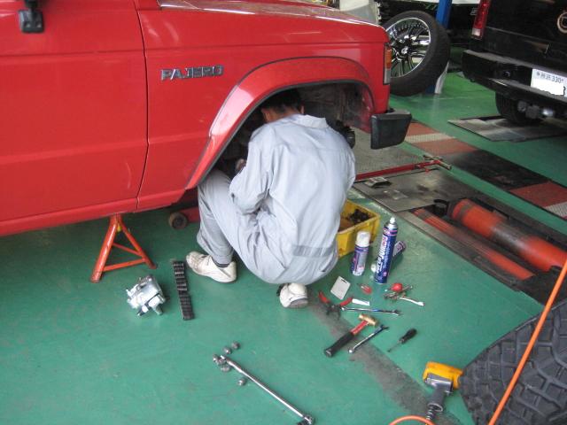 三菱 パジェロ T-L141G ブレーキキャリパー交換 ミッションオイル交換 4輪アライメント調整