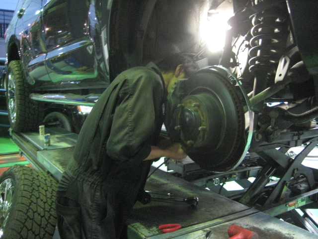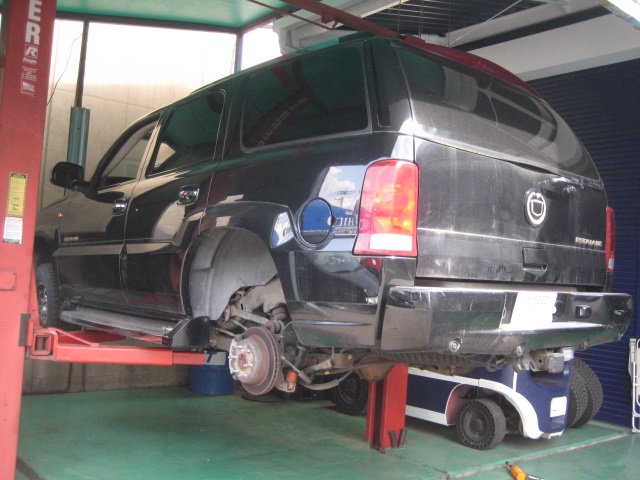 キャデラック エスカレード 車検 点検整備 ショックオイル漏れ リヤアクスルシャフトオイルシール漏れ リヤブレーキシュー交換
