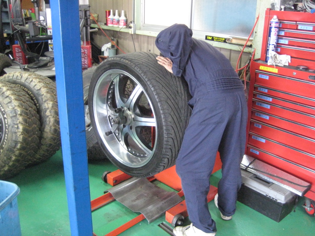 タイヤの厚みがあまり無いため、ジャッキで補助しながら、