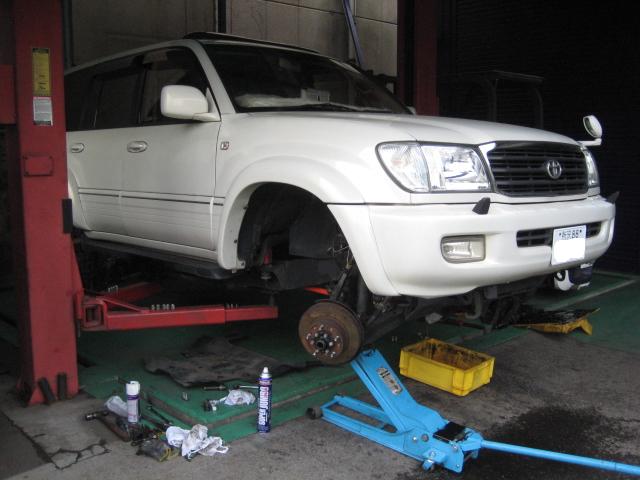 トヨタ ランクル100 車検 点検整備 ドライブシャフトブーツ切れ 強化ブーツ交換 ファンベルト交換