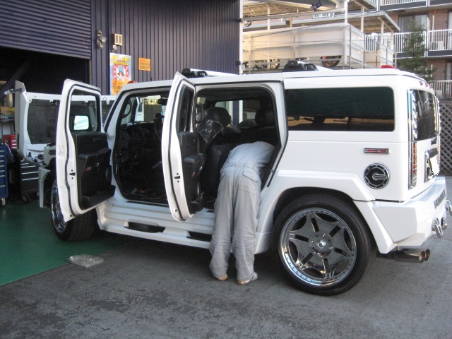 ハマーH2 ロック音取付 サブウーファー取付 持込部品取付