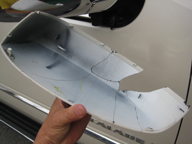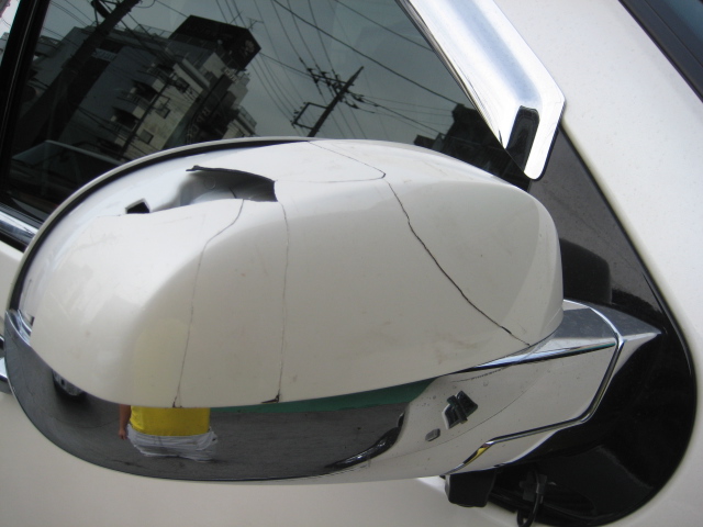 ミラーカバーは粉々に