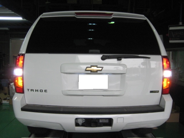シボレー タホ 車検整備 サイド・フロントカメラ取付 埋め込み加工 テールランプLEDバルブ交換
