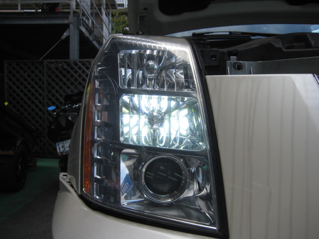 キャデラック エスカレード 車検 点検整備 テールランプ改善 デイライトスモール化 バックカメラ取付