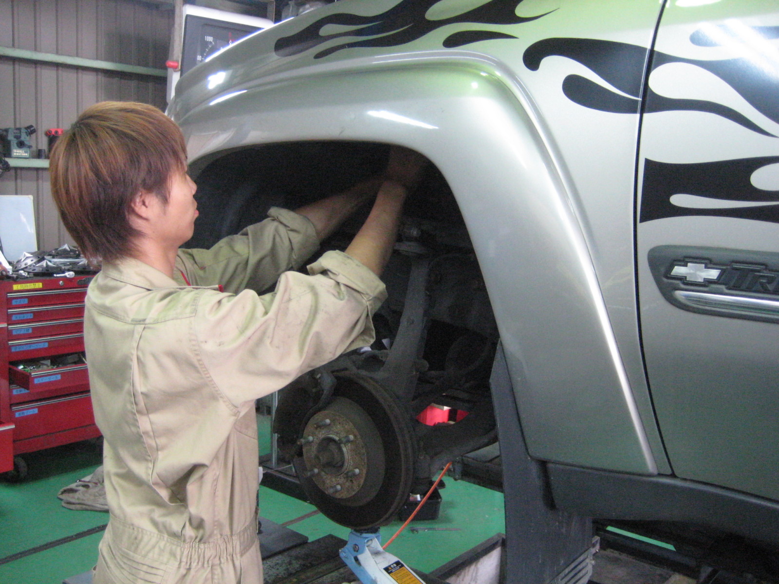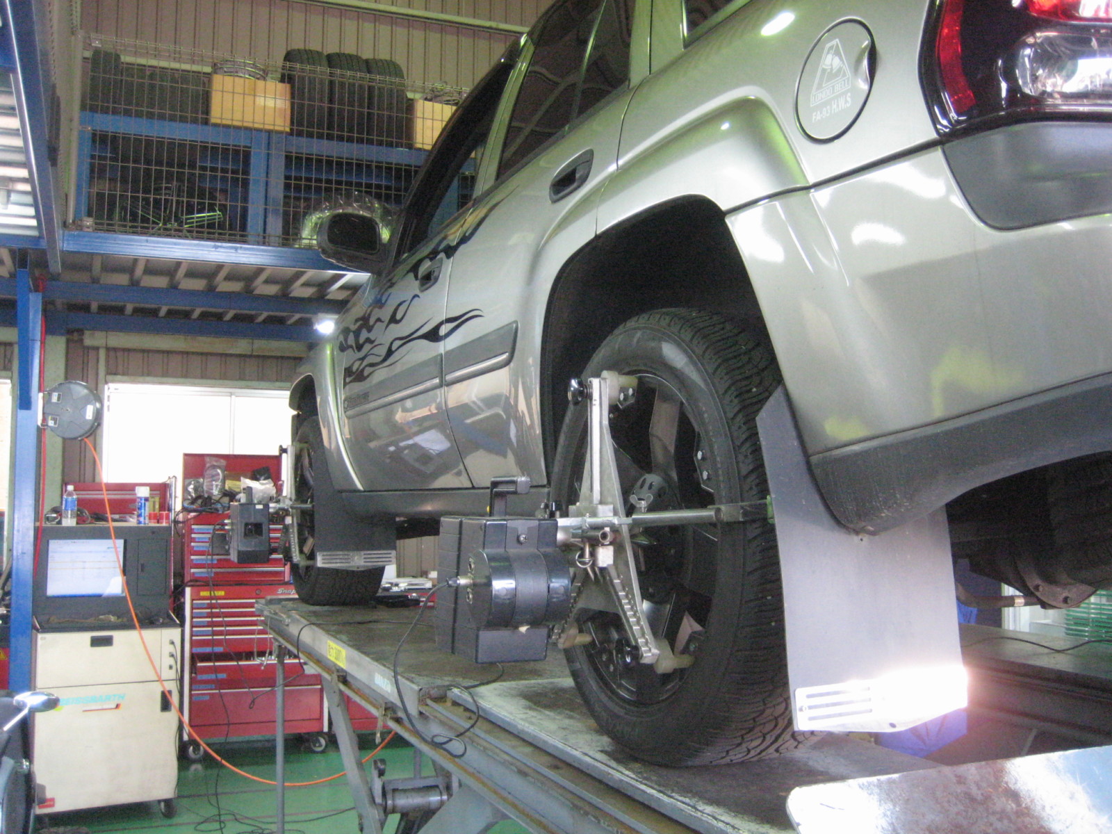 シボレー トレイルブレイザー リフトアップ 4輪アライメント調整 持込パーツ取付
