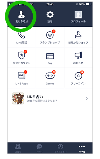 まずは「友だち追加」から。
