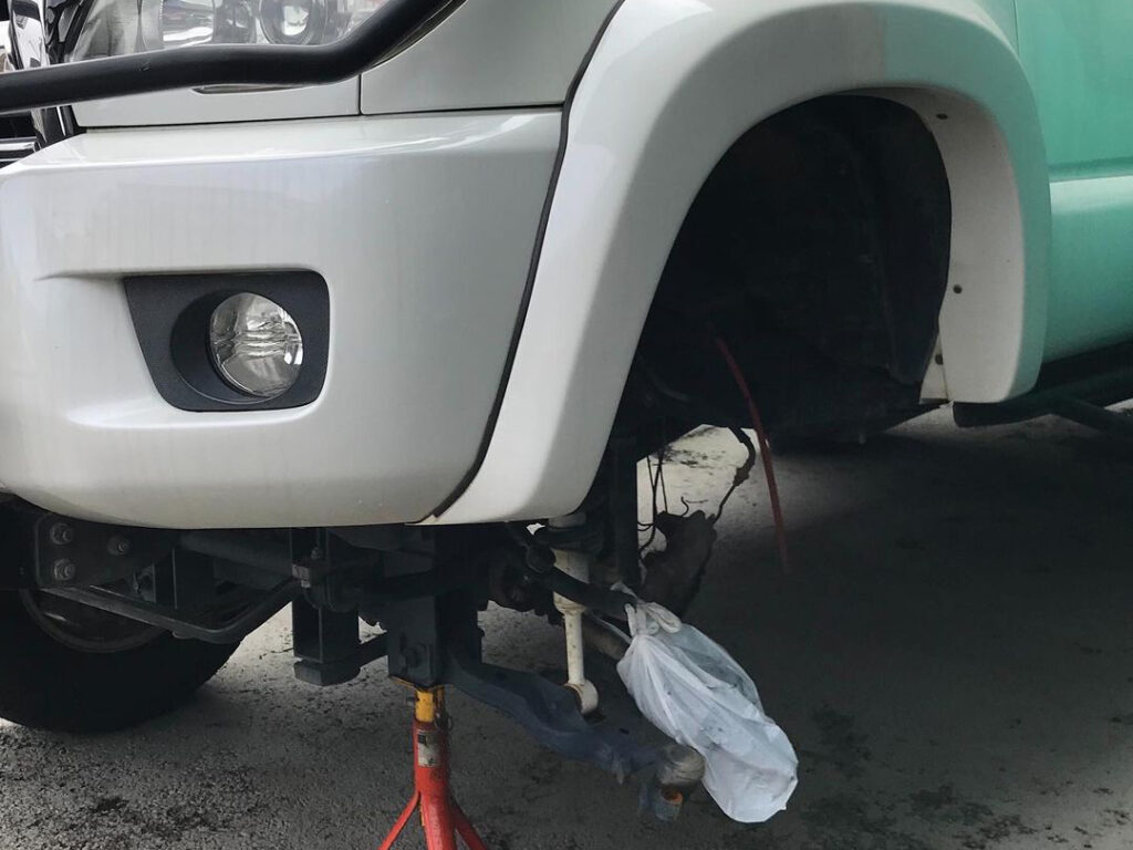 10′ フォード エクスプローラー 車検 ロアボールジョイントブーツのみ交換 ブレーキキャリパーオーバーホール ブレーキブリーダー折れ修理