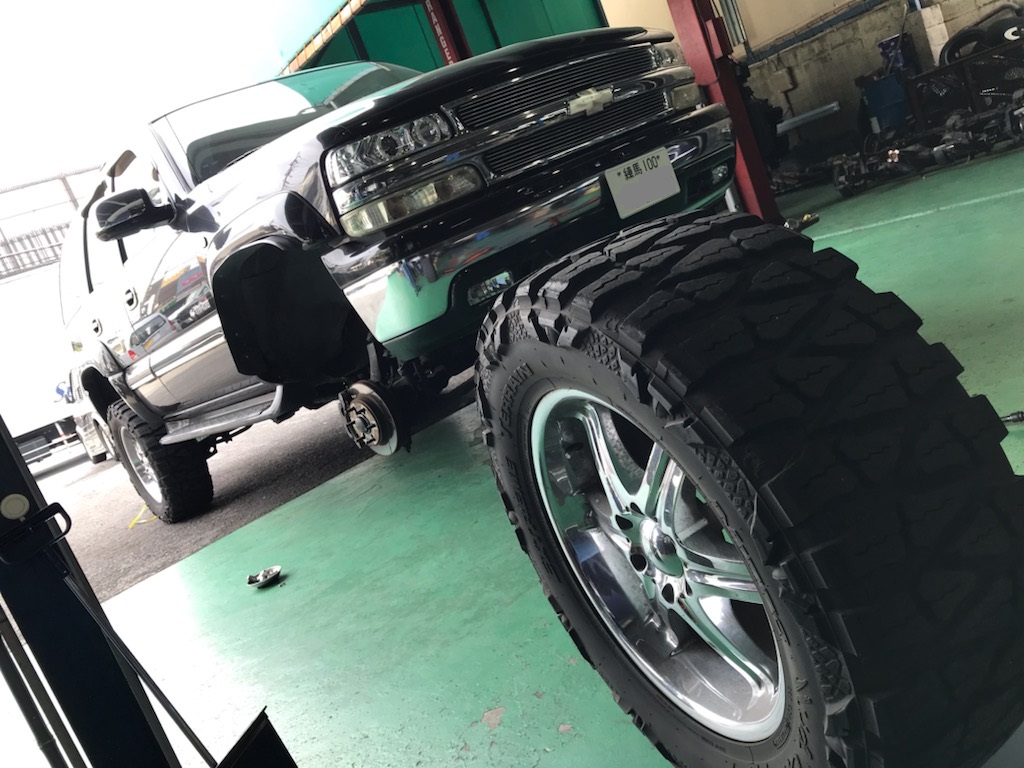 三菱 スペースギア リフトアップ ブレーキ修理 スーパースワンパー44インチ